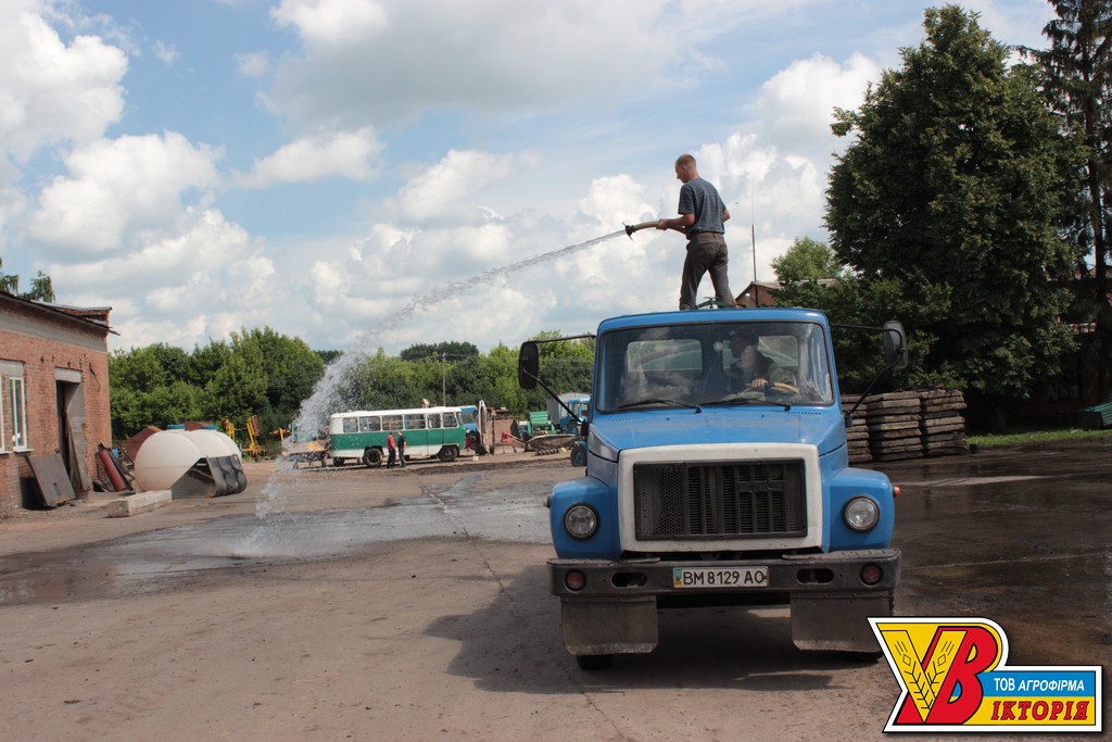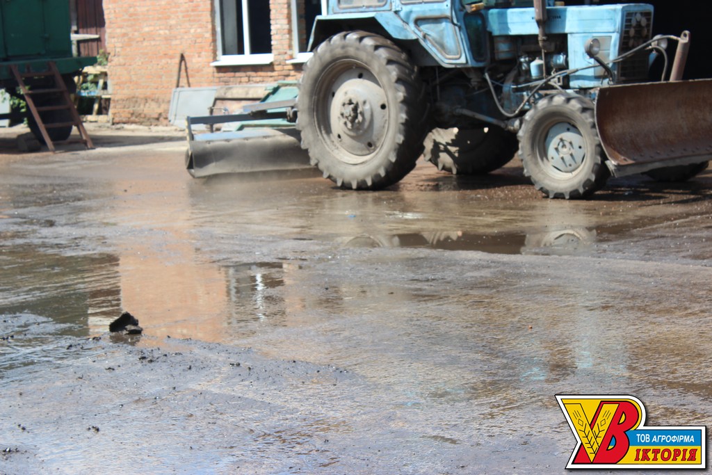 Наші трактористи слідкують за температурним режимом на мехзагоні та чистотою робочого місця. Для цього використовують воду та щітку.